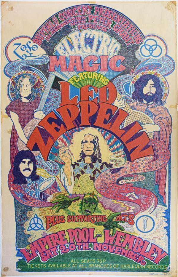 1971 Led Zeppelin Electric Magic Shows Empire Pool Wembley Poster Trimmed Extra Fine 65
