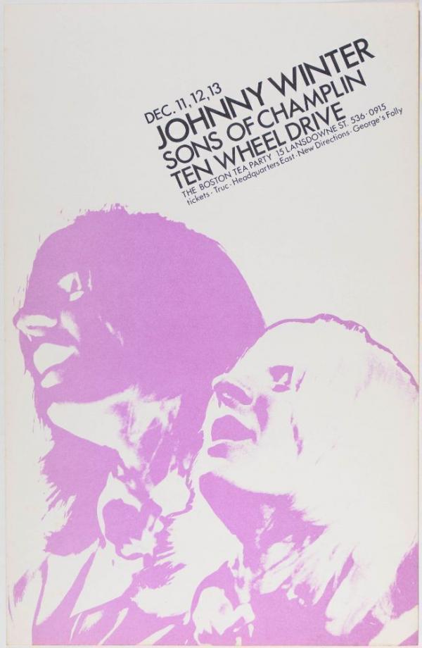 1969 Johnny Winter Janis Joplin Sit-In Boston Tea Party Poster Near Mint 81