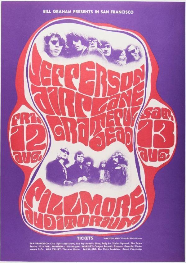 1966 BG-23 Jefferson Airplane Grateful Dead Fillmore Auditorium RP2 Poster Near Mint 87