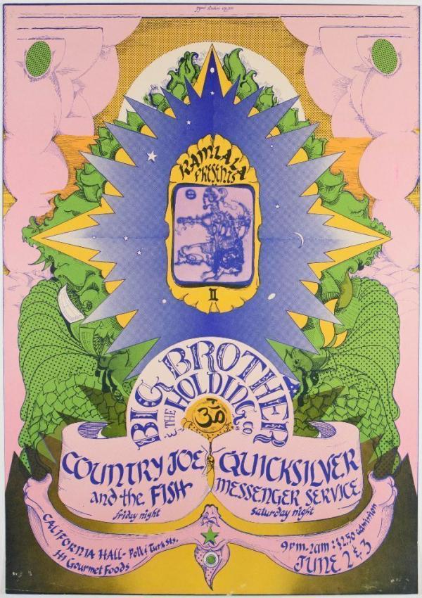 1967 AOR-2.158 Big Brother Janis Joplin Quicksilver California Hall Poster Excellent 79