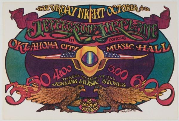 1969 Jefferson Airplane Oklahoma City Music Hall Handbill Near Mint 89