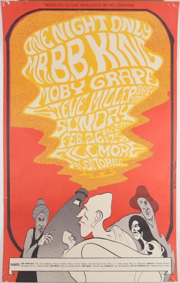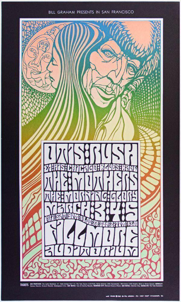 1967 BG-53 Otis Rush Frank Zappa The Mothers Fillmore Auditorium Poster Near Mint 89
