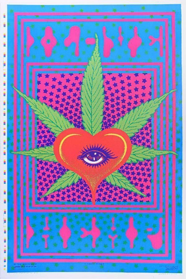 1994 Victor Moscoso I Love Hemp Printers Proof Signed Moscoso Poster Near Mint 85