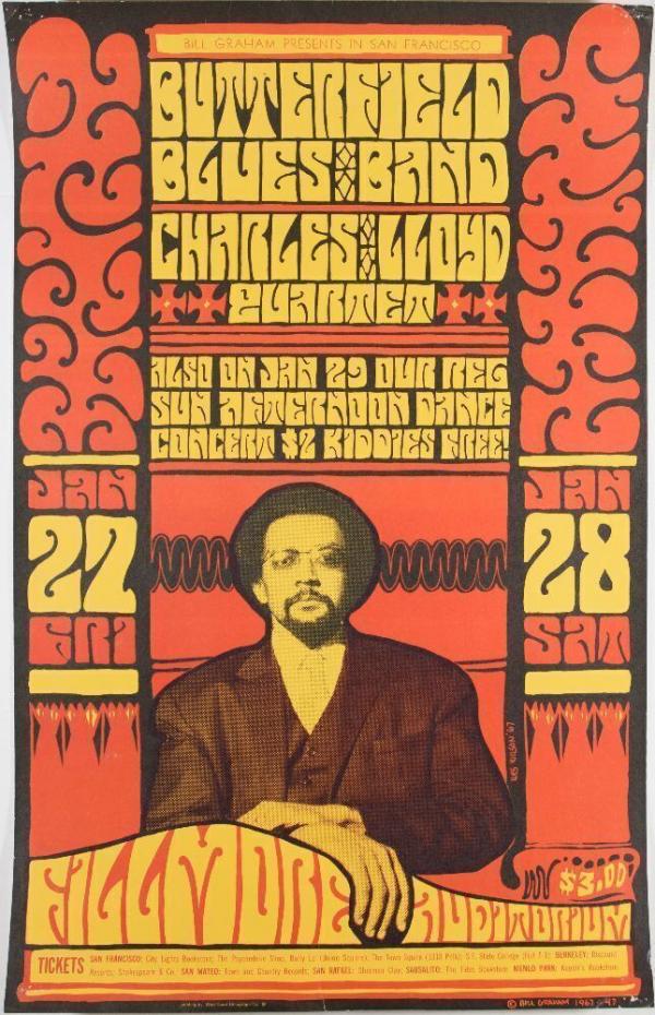 1967 BG-47 Butterfield Blues Band Charles Lloyd Quartet Fillmore Auditorium Poster Excellent 73