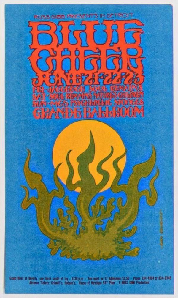 1968 G/G-680621 Blue Cheer Grande Ballroom Detroit Postcard Near Mint 83