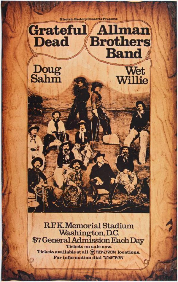 1973 Grateful Dead Allman Brothers Band RFK Stadium RP2 Poster Near Mint 85