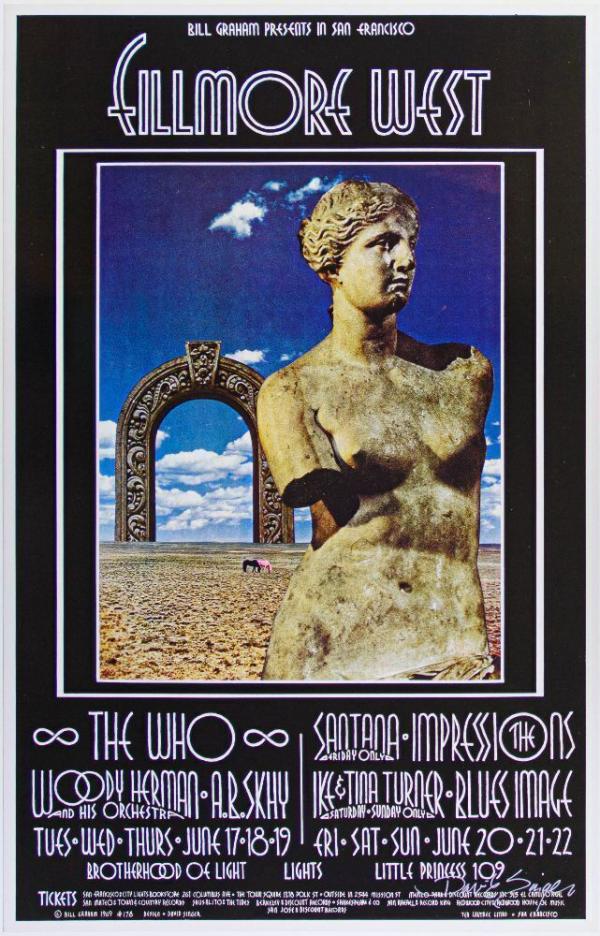 1969 BG-178 The Who Santana Ike & Tina Turner Fillmore West Signed Singer Poster Mint 90