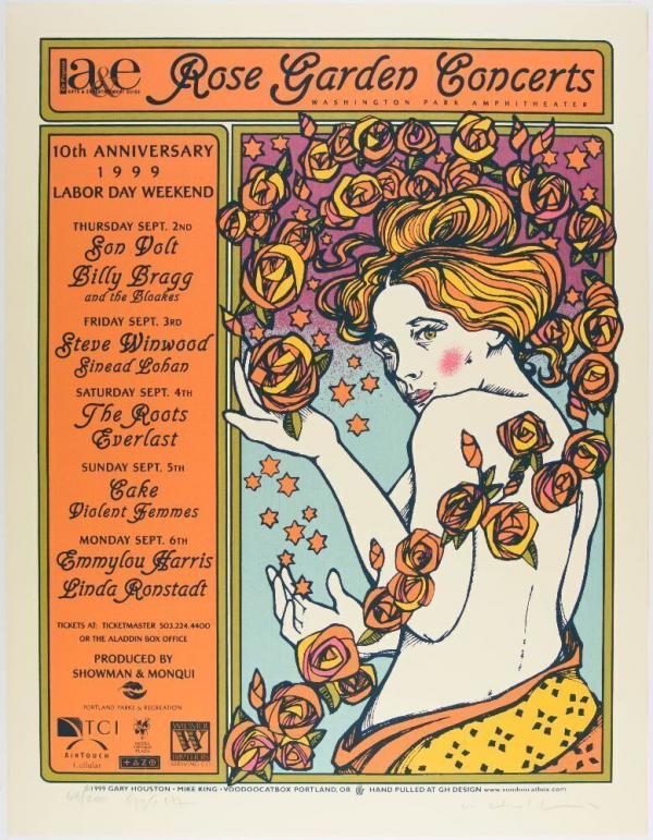1995 The Roots Steve Winwood Emmylou Harris Rose Garden Calendar Signed Gary Houston Poster Mint 91