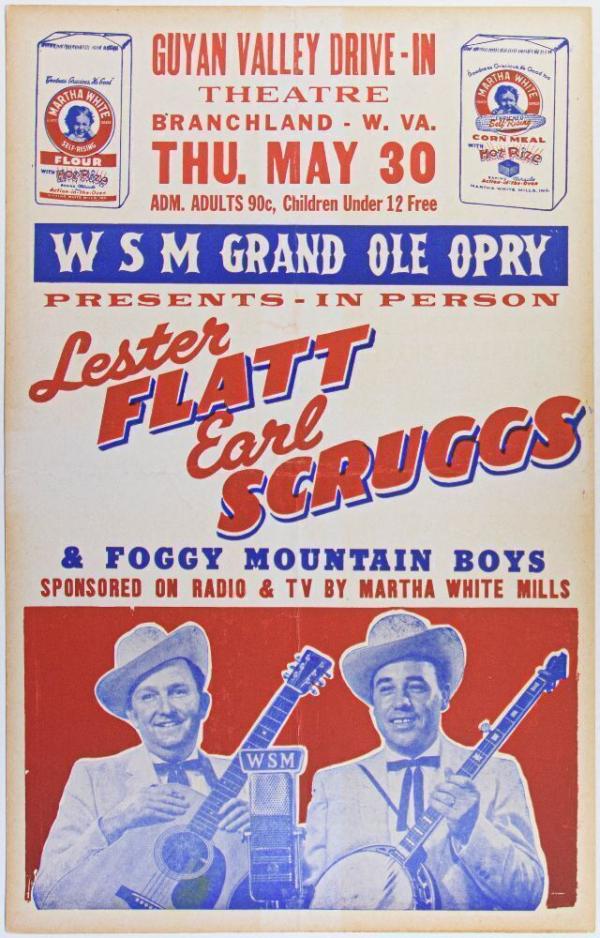 1957 Lester Flatt & Earl Scruggs Guyan Valley Drive-In Theatre West Virginia Hatch Cardboard Poster Excellent 75