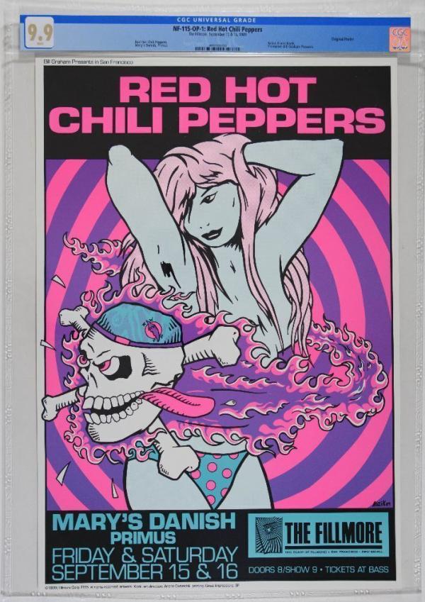 1989 NF-115 Frank Kozik Red Hot Chili Peppers Primus The Fillmore Poster CGC 9.9