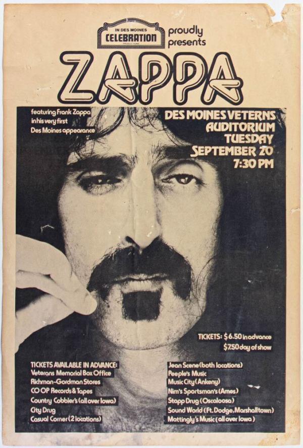 1977 Frank Zappa Des Moines Veterans Auditorium Poster Extra Fine 63