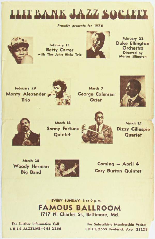 1976 Duke Ellington Dizzy Gillespie Left Bank Jazz Society Famous Ballroom Baltimore Poster Extra Fine 61