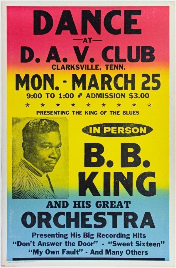 1968 B.B. King D.A.V. Club Clarksville Tennessee Cardboard Poster Near Mint 81