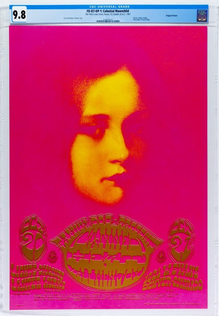 We don't see the rare OP-1 Original printing of this rare & amazing Alton Kelley poster very often. One of only a handful of CGC graded OP-1 examples of this issue to appear in our auction. The 9.4 quality exhibited here will always enjoy top demand. Monster eye appeal! Must be seen in person to be appreciated! Beautiful work by the late great Alton Kelley. This poster is in sweet Museum Quality Condition!