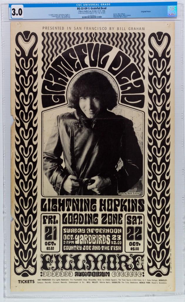 This beautiful Herb Greene and Wes Wilson collaboration is one of the pair's top joint efforts. This Classic photo of a bare-faced Jerry from '66 is a must-have for any Fillmore or Grateful Dead collection. A perennial favorite with collectors