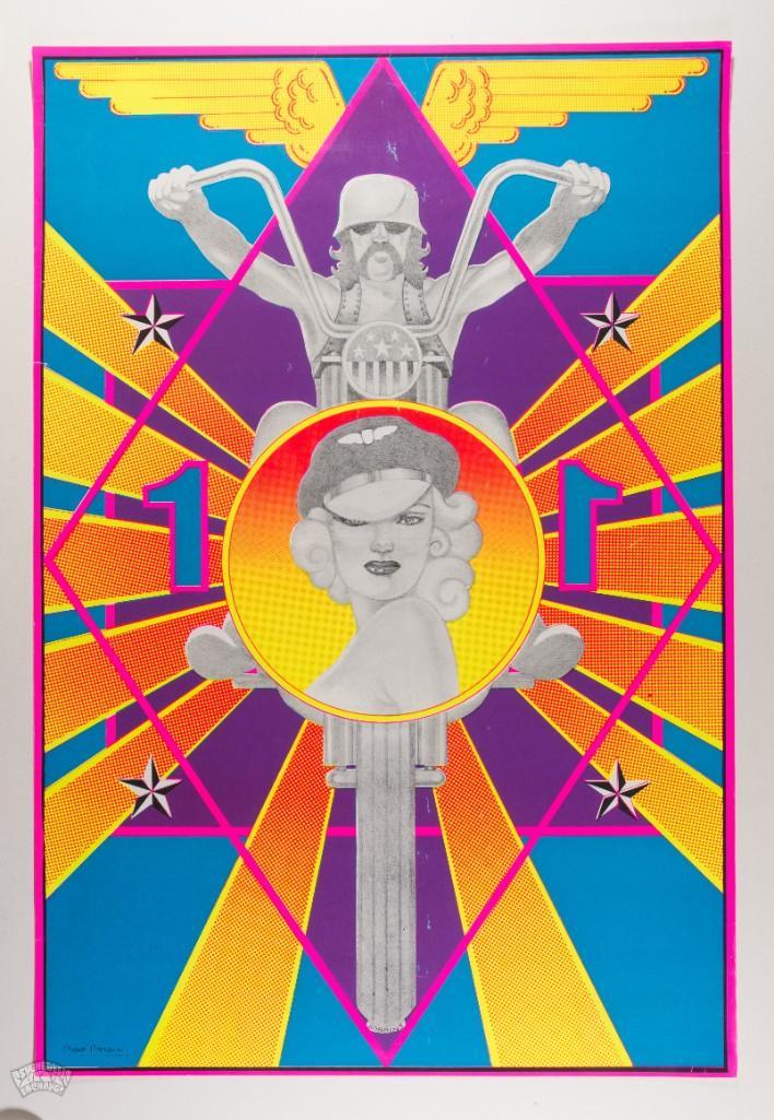 Eye candy imagery that says 1969 all over it! Here we have a striking headshop poster designed by artist Robbins called Biker 1. It was distributed by Poster Prints Inc.