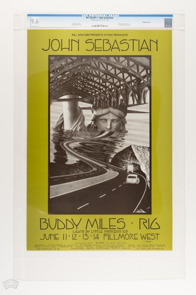 We're pleased to offer this popular Buddy Miles & John Sebastian poster in museum quality condition. Collectors are snapping up these later issues whenever they are offered this pristine. They represent incredible bargains compared to other collectible markets.