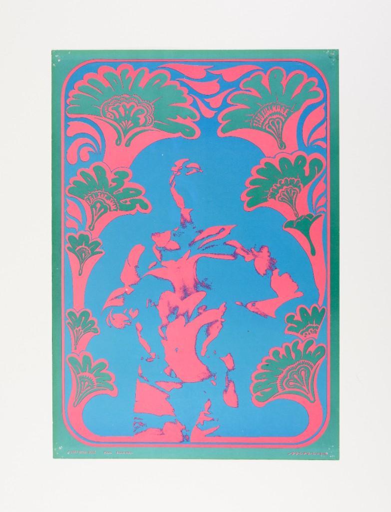Victor Moscoso had an arrangement with the management of the Matrix to produce a series of posters for shows at this small club in the Marina. Of the approximately 2000 posters printed the club would use a few hundred for publicity. The bulk of the remaining posters were retained by the artist.