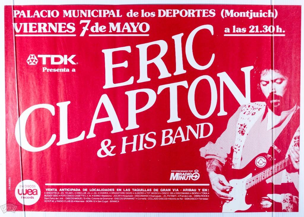 This rare poster was created for Eric Clapton's appearance at Palacio Minucipal de los Deportes in Barcelona, Spain on June 7th, 1983. This is the first time it is appearing in our auction!