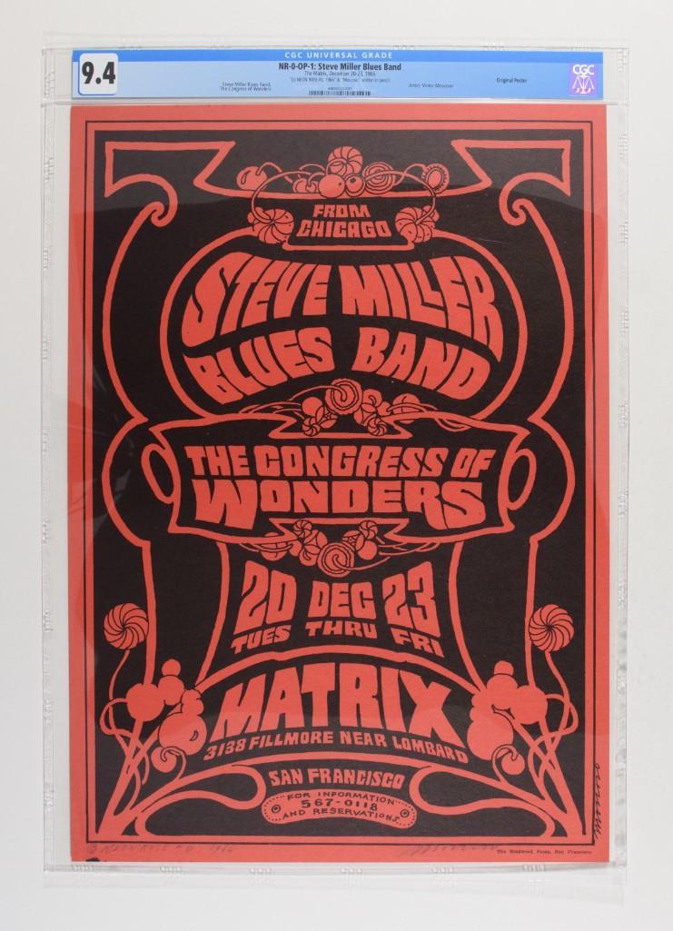 Unlike the rest of the series, the NR-0 was printed only one time in an extremely limited quantity. According to Eric King author of The Collectors Guide to Psychedelic Concert Posters Postcards and Handbills 1965-1973, the NR-0 was printed in quantities of less than 500 probably, in the 300 range. Conversely, the rest of the series was printed in quantities of 2000 and several were reprinted. Every serious concert poster collector strives to have a Moscoso in their collection. Here is a wonderful opportunity to add a rare one to yours!