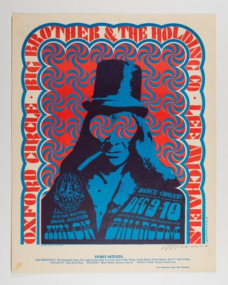 This masterpiece by Victor Moscoso is at the top of the list of the artist's contributions to the Avalon Ballroom Family Dog series. The design was an early experiment by the artist in the use of opposing colors to create different effects. This is one of the classic images of 1960s Psychedelic Poster Art, and as such, it has been widely displayed in major art museums throughout the world. 100% Original with no restoration!