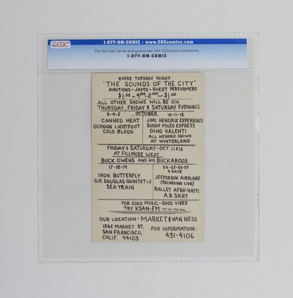This incredible collaboration between the two masters of the poster scene Victor Moscoso and Rick Griffin was created for a three-show run at Winterland featuring The Jimi Hendrix Experience. These concerts were legendary with two performances each night. The recordings have been recently re-released in a huge boxed set.
