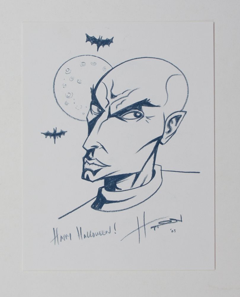 Justin Hampton is a renowned contemporary artist known for his distinctive blend of street art and fine art who has been creating posters since the 1990s. His distinctive style often features comic book-style characters, such as the one seen here. This ORIGINAL drawing was produced in 2005 and reads "Happy Halloween". A one-of-a-kind, rare find!