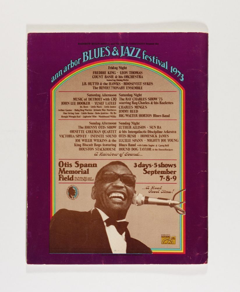 This program was created for the 1973 Ann Arbor Blues & Jazz Festival. The 1973 festival incorporated a Detroit blues review and the great Bobo Jenkins was one of the featured acts. The 3-day festival also included appearances by some of the most legendary names in popular music like Ray Charles John Lee Hooker Count Basie Charles Mingus Jimmy Reed Freddie King Ornette Coleman and many many more!