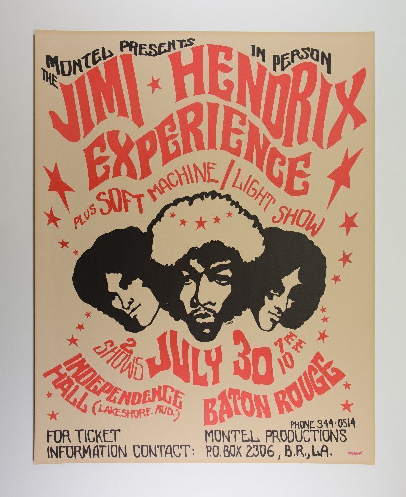 This is a post concert printing, artist proof poster for the Jimi Hendrix Experience in Baton Rouge Louisiana. Images from the 1968 Experience tour are among the most coveted pieces of Rock memorabilia available anywhere.