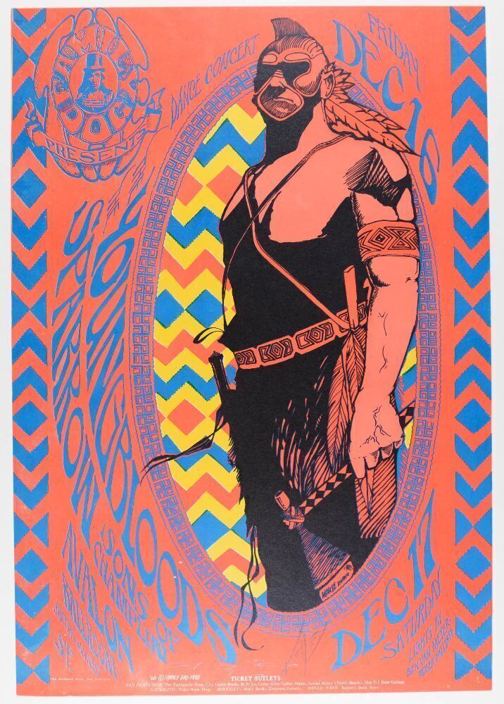 This wonderful Mouse/Kelley composition is the first Avalon Ballroom design to offer a full bleed design that eschews the white border that appeared on earlier issues.