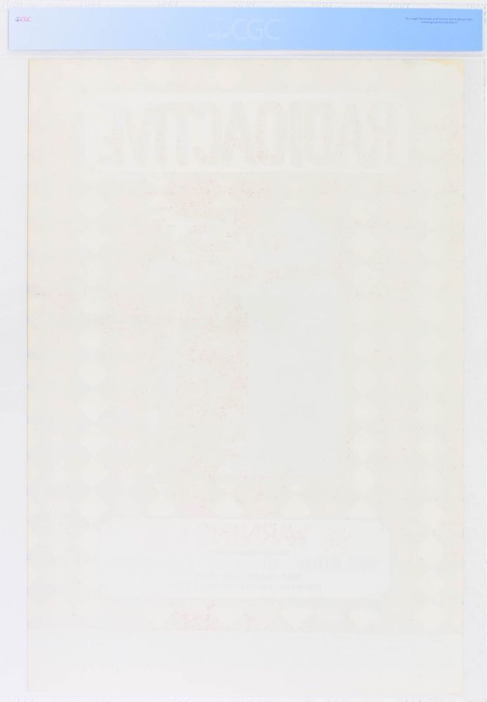 Original poster produced for Steve Miller, Allmen Joy and Linn County for a 3 day run at the Avalon in February 1969. This goofy design by Alton Kelly and Stanley Mouse warns of "Radioactive" contents. The design really jumps off the paper with its red, black and yellow checkerboard design! This poster does not appear in our auctions very often. Sound Proof Productions took over the Avalon after the Family Dogs’ tenure was finished. As did the Family Dog, Sound Proof Presents employed many of the best poster artists of the day, including Mouse, Kelley, Rick Griffin, Greg Irons and Bob Fried.