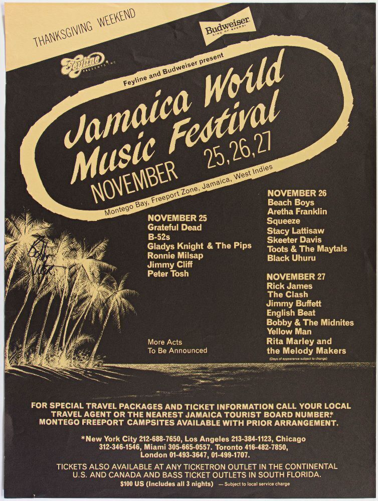 --PERFORMERS: Grateful Dead Beach Boys Rick James The B-52’s The Clash Peter Tosh Aretha Franklin and many more
