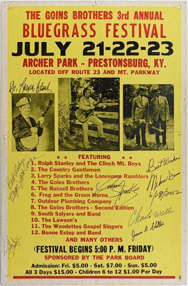 This poster is signed by multiple performers from this festival, including Ralph Stanley, Melvin Goins, Larry Sparks, Jack Cooke (bass player for Ralph Stanley), and more!