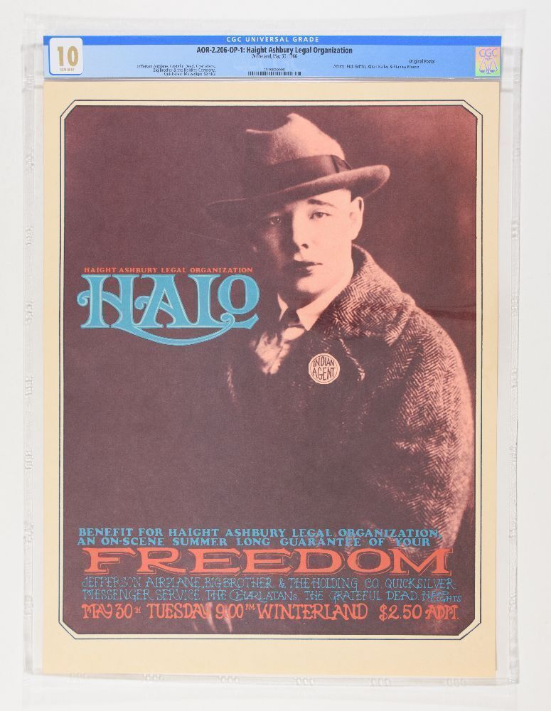 A HIGH-GRADE, PERFECT 10! This classic Mouse, Kelley, and Griffin poster was for a Haight Ashbury Legal Organization (HALO) benefit that was held at Winterland in 1967. This poster is a fixture in almost every Psychedelic Rock Poster collection. Yet another relative steal in collectibles! Three of the top poster artists of all time, collaborating on a poster for the top bands of the day, for an event with huge historical importance.