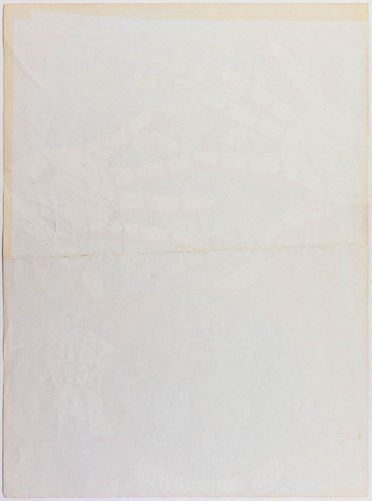 This original poster is a rare treasure that is always at the top of collectors’ wish lists. It advertises a 1967 Grateful Dead concert at the Continental Ballroom. This piece was produced on ultra-thin tissue-like paper that is also textured. 99% of all known copies were distributed in copies of The Continental Ballroom's Guru newspaper, and exhibit horizontal folds as a result.