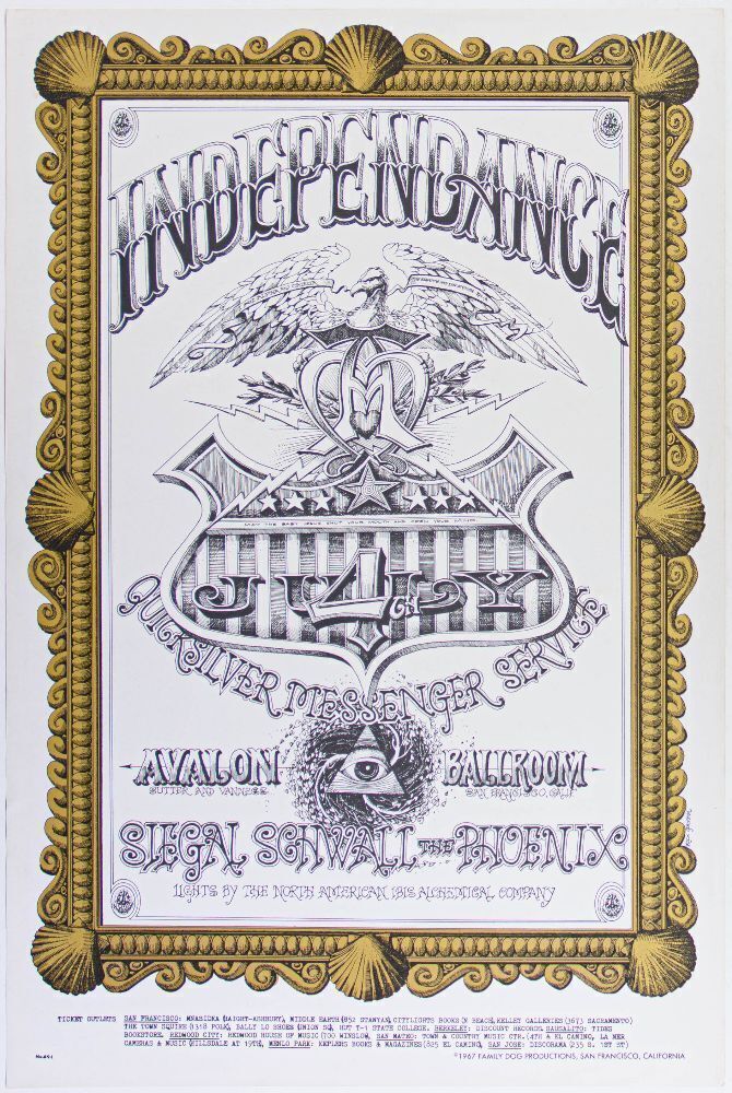 This classic, simple, and powerful design from Rick Griffin was his advertisement for The Family Dog's 4th of July Party in 1967. If you are new to collecting and would like to acquire an original first-printing poster by the legendary Rick Griffin without breaking the bank, this lot has your name written all over it!