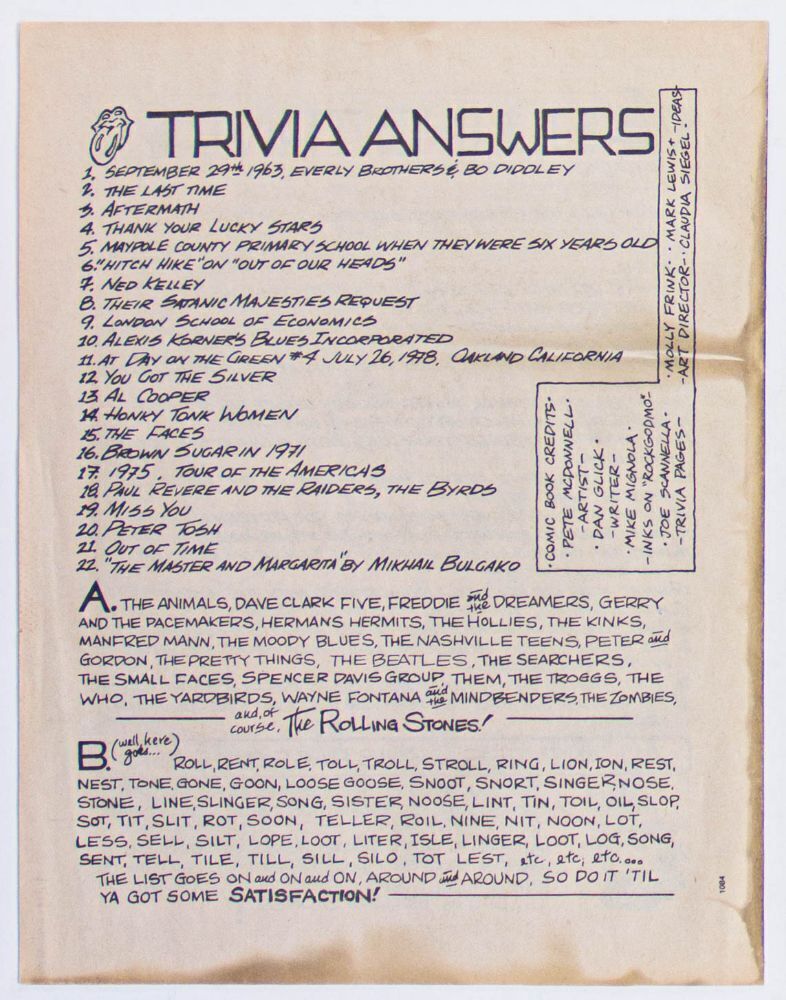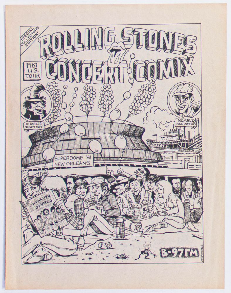 This lot features Rolling Stones Concert Comix, a special comic book produced for the 1981 U.S. tour. That year's resulting studio album, Tattoo You, featured a number of outtakes, including the single "Start Me Up".