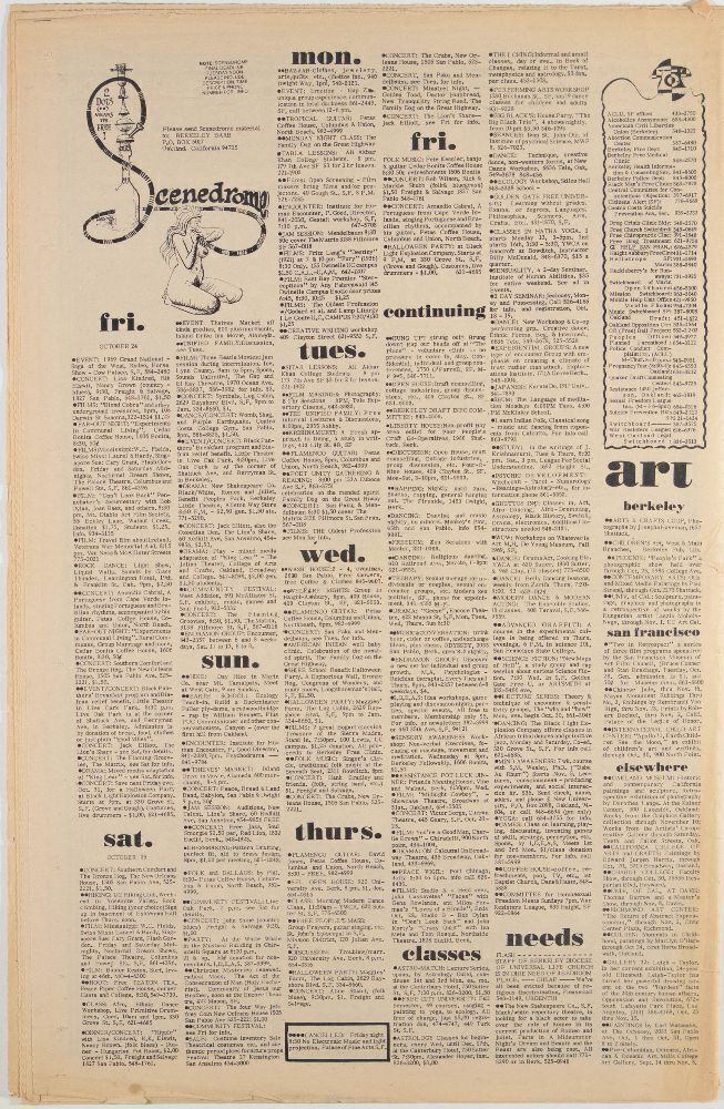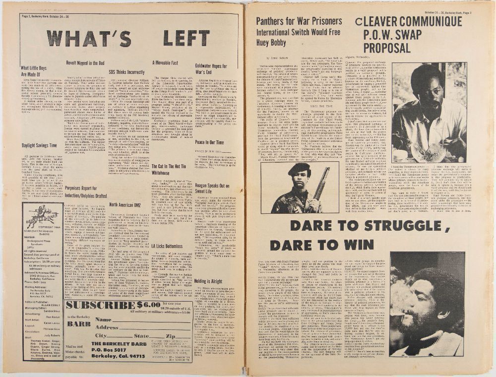 This lot features Vol. 7 No. 19 Issue 168 of the Berkeley Barb. The Berkeley Barb underground newspaper is a great window back in time. These include historic articles about what was going on in the underground scene, mostly from an agitated counter-cultural viewpoint. In addition, these have lots of cool ads for bands and plenty of Summer of Love-type swag.