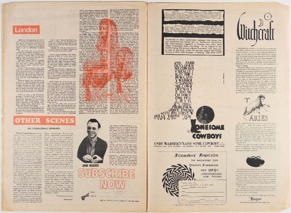 This lot features Vol. 3, No. 4 of John Wilcock's Other Scenes, published in April 1969. The underground newspaper was published for many years in New York City, described as "a revolutionary newsletter concerned with art, politics, sociology, sex, and the creation of a more equitable society." Wilcock himself was a frequent guest at Andy Warhol's Factory. We've never offered this issue or any other Other Scenes issue in our auction, so this is a special opportunity!