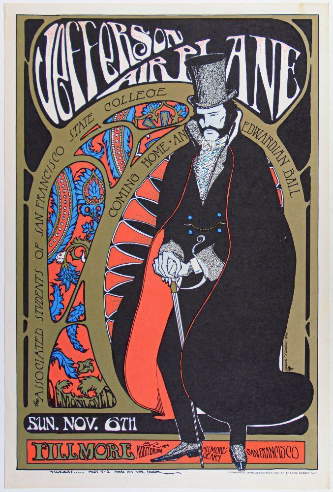 This official second-printing poster offered weeks after the show over 50 years ago should be available for far less than an original would command. The artwork for the "Edwardian Ball" is without a doubt one of the most popular and iconic 1960s concert images. Rumor has it that the figure portrayed in this image was none other than Alton Kelley.