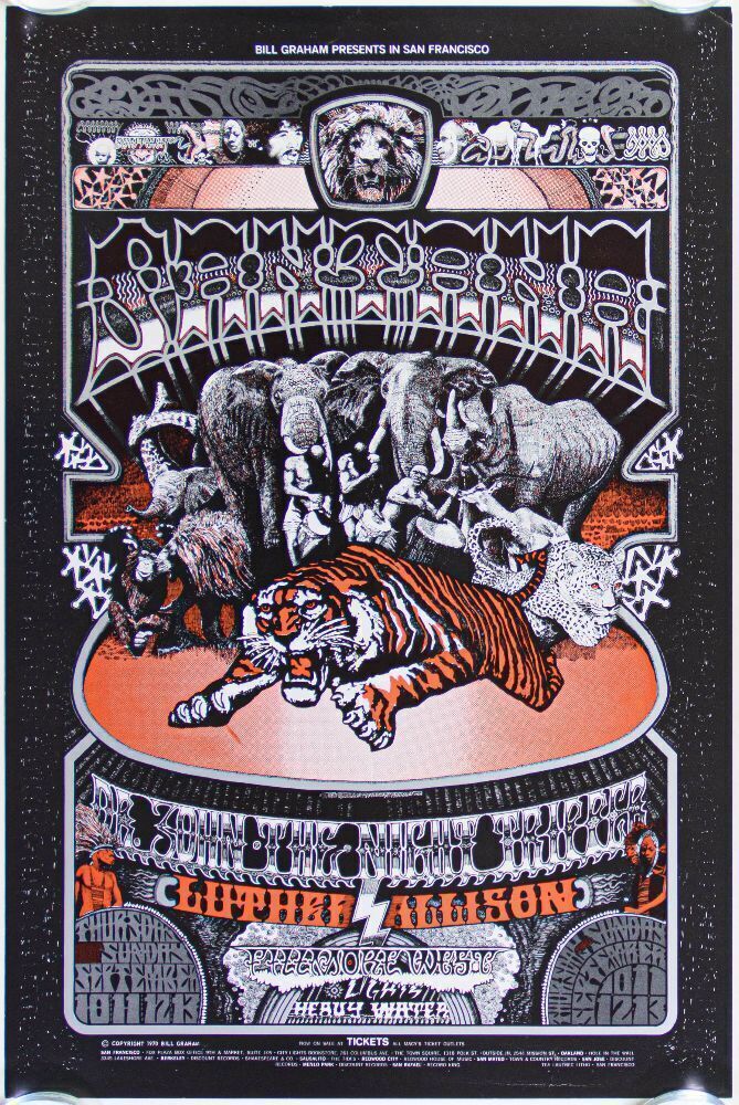 This stunning circus motif was the first effort of artist Norman Orr for the Fillmore series. Orr went on to create a handful of visually powerful posters for Bill Graham and this one has amazing eye appeal!