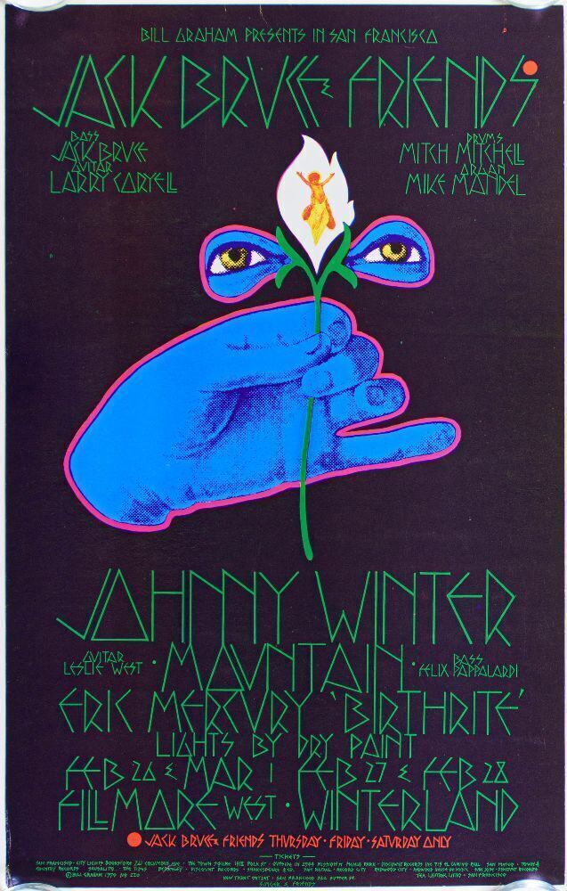 We don't offer many examples of this original Jack Bruce & Friends, First Printing poster in our auction! The great blues icon Johnny Winter was in support.