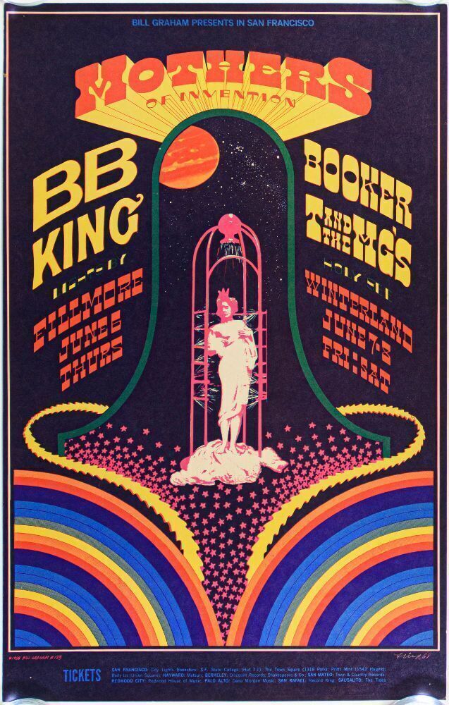 Frank Zappa & The Mothers of Invention, Booker T and the MGs, along with one of the greatest blues guitarists to ever grace the face of the earth. We have reported extensively about the huge and growing demand for B.B. King concert posters since his passing. This is an incredible piece of history that is sure to bring the new owner much joy now, and even more with each passing year.