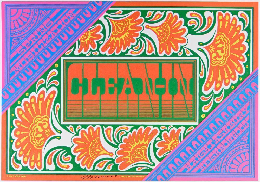 In addition to promoting concerts at the Matrix, Victor Moscoso's Neon Rose series also included commissions for posters advertising art exhibitions and special events like this one. The NR-15 advertised a Spring Mobilization for cleaning up the Haight in 1967. Another beautiful poster that will get the attention of those who realize the potential of these historic artworks!