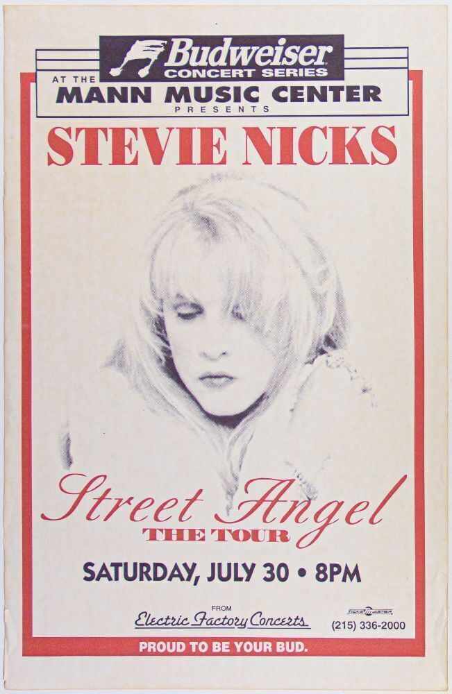 This poster was produced for the great Stevie Nick's appearance at the Mann Center in Philadelphia on July 30th, 1994. Nicks was touring in support of her fifth studio album, Street Angel, which was released a few months prior.