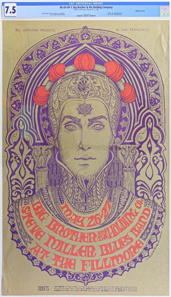 Lovely art from the pen of Bonnie MacLean featuring Janis Joplin & Big Brother at the Fillmore. Original first printings, such as this, with beautiful graphics and famous bands that can be acquired at reasonable prices, are why collectors are so excited about this fast-growing hobby!