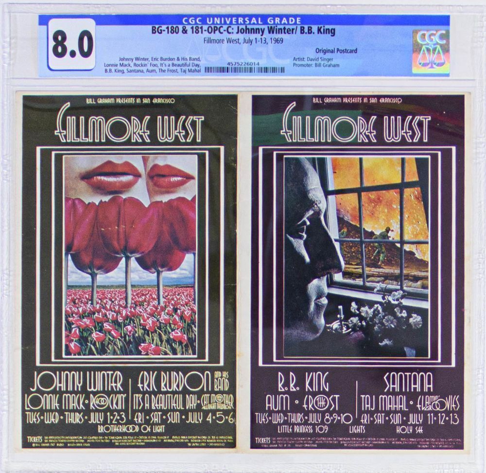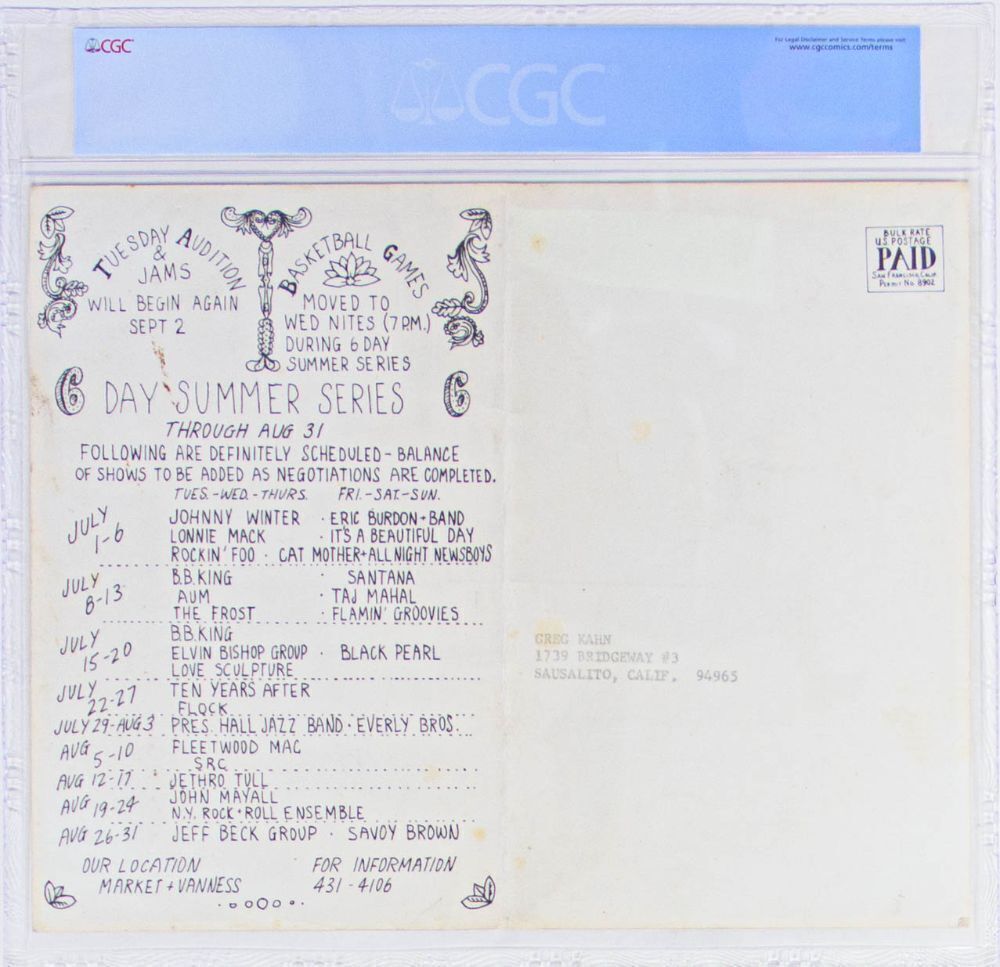 New to collecting vintage concert material? This original Bill Graham double-postcard is a great place to start! World-famous bands, a legendary venue, and best of all, a famous sixties poster artist.