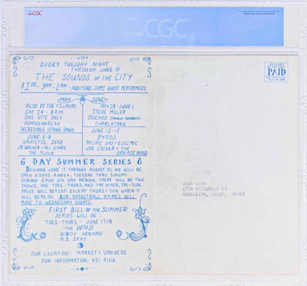 This special double postcard features the BG-174 and BG-175 artwork by Randy Tuten! Legendary bands, legendary poster artists, and legendary concert venues...available at an affordable price that have collectors so excited about this rapidly growing hobby!