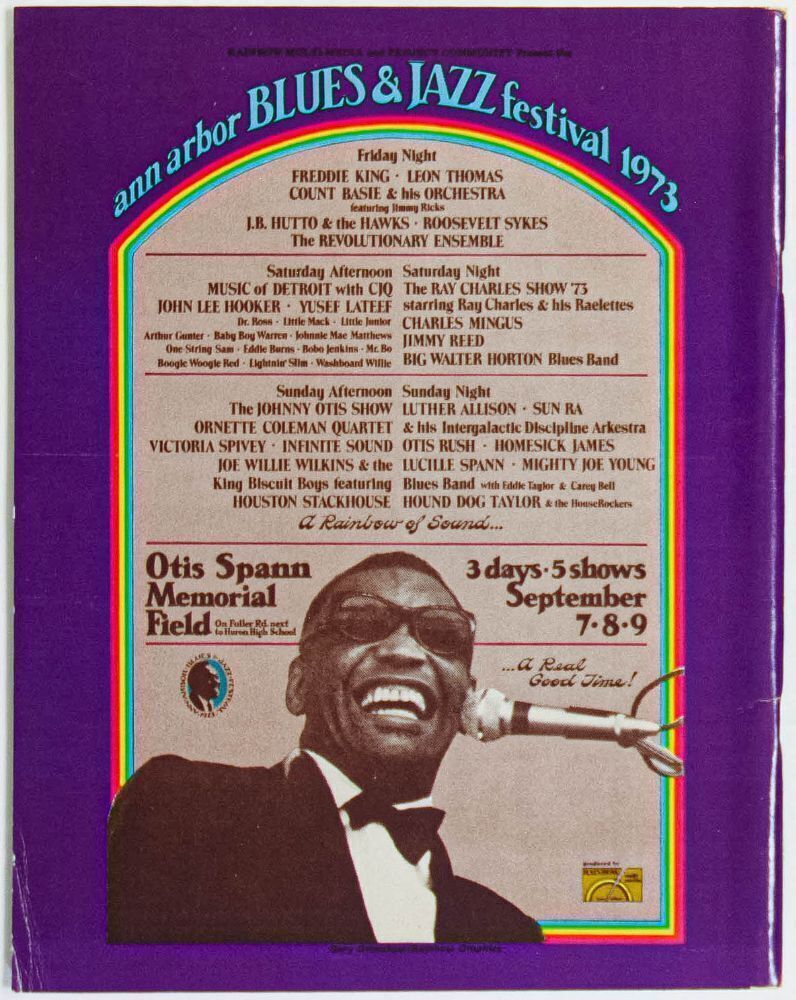 This program was created for the 1973 Ann Arbor Blues & Jazz Festival. The 1973 festival incorporated a Detroit blues review, and the great Bobo Jenkins was one of the featured acts. The 3-day festival also included appearances by some of the most legendary names in popular music, like Ray Charles, John Lee Hooker, Count Basie, Charles Mingus, Jimmy Reed, Freddie King, Ornette Coleman, and many many more!