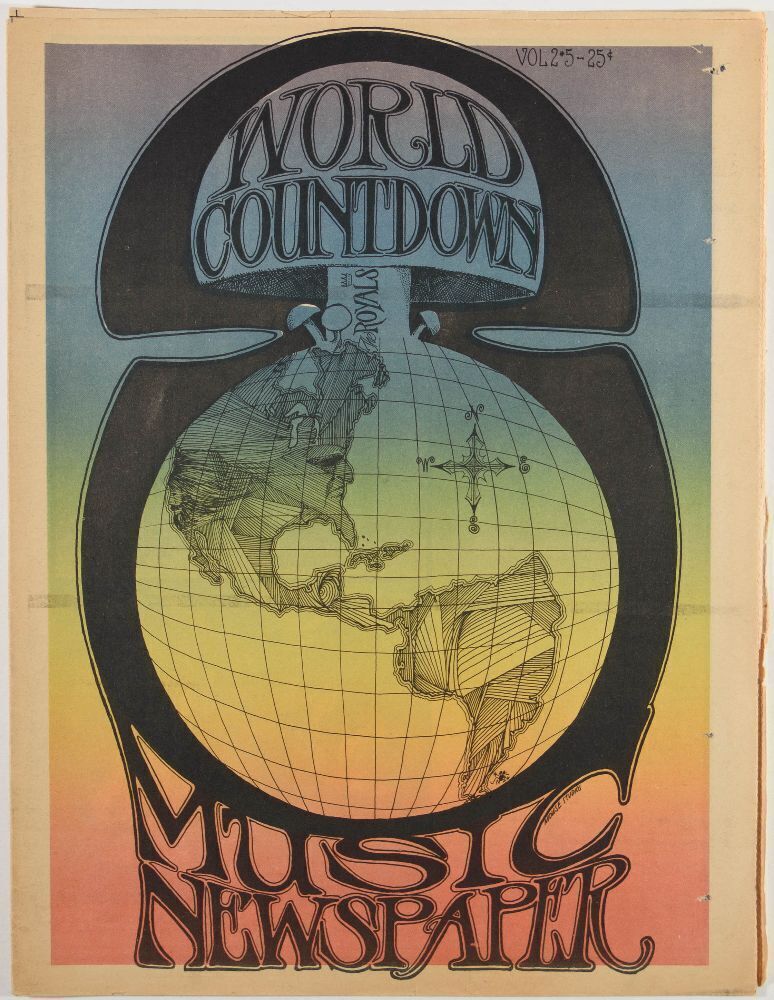 This lot features a RARE underground publication from the 1960s! The World Countdown Music Newspaper, also known as Royal's World Countdown, was published by Charles Royal in Los Angeles from 1966 until 1969, totaling 29 issues. The issue offered here is Volume 2. No. 5, released in 1967. The cover design was created by none other than poster legend Stanley Mouse, and the issue includes articles by Ralph Gleason. Gleason was a pioneering American music critic, journalist, and co-founder of Rolling Stone magazine. This is an amazing 1960s relic that should not be overlooked!